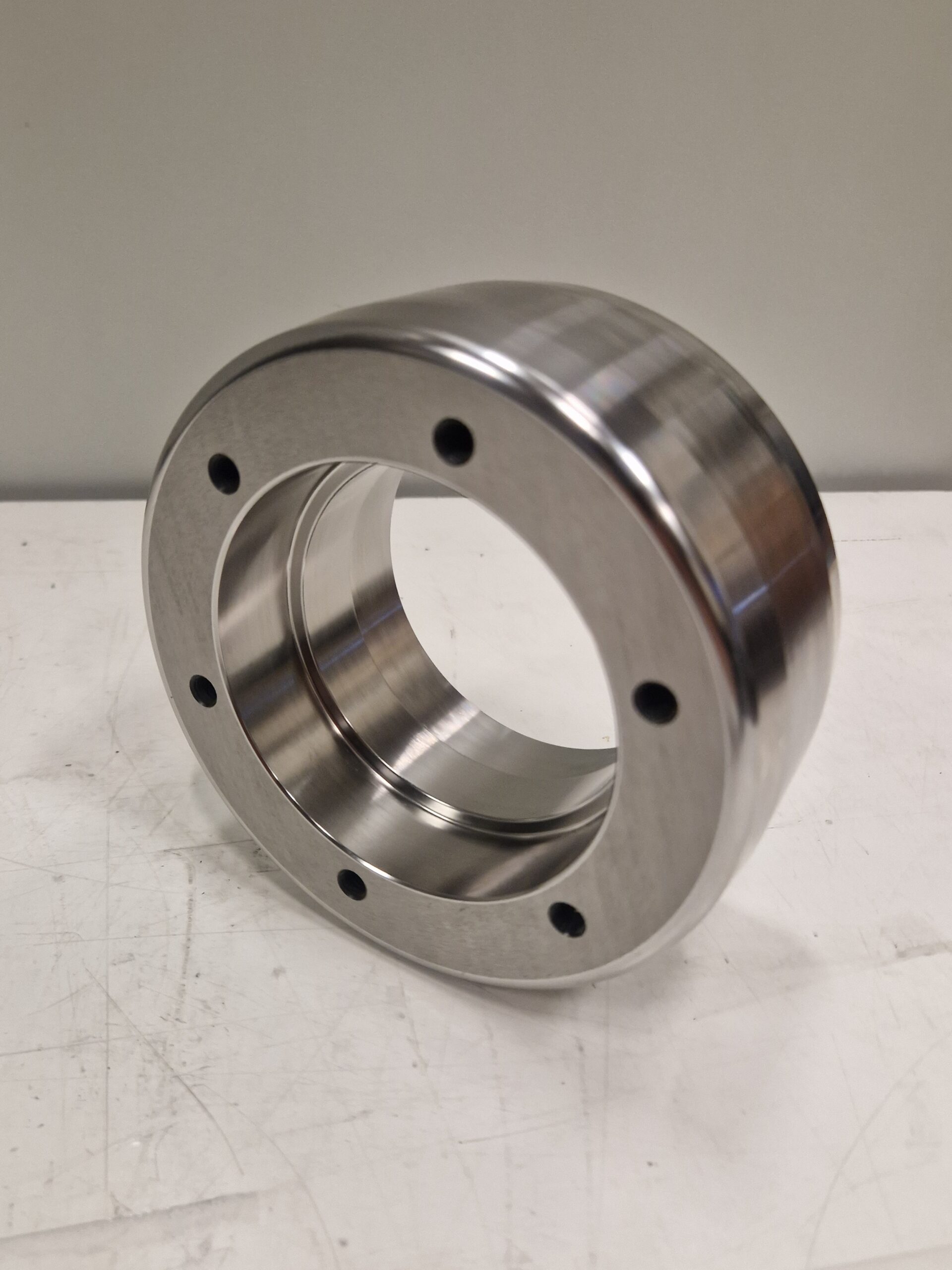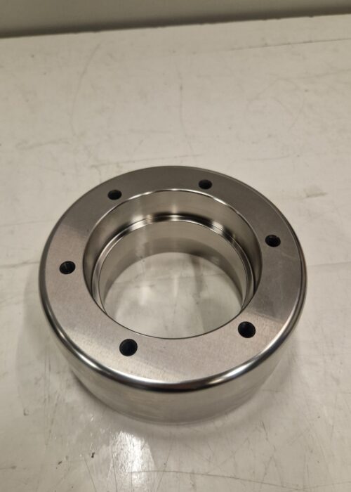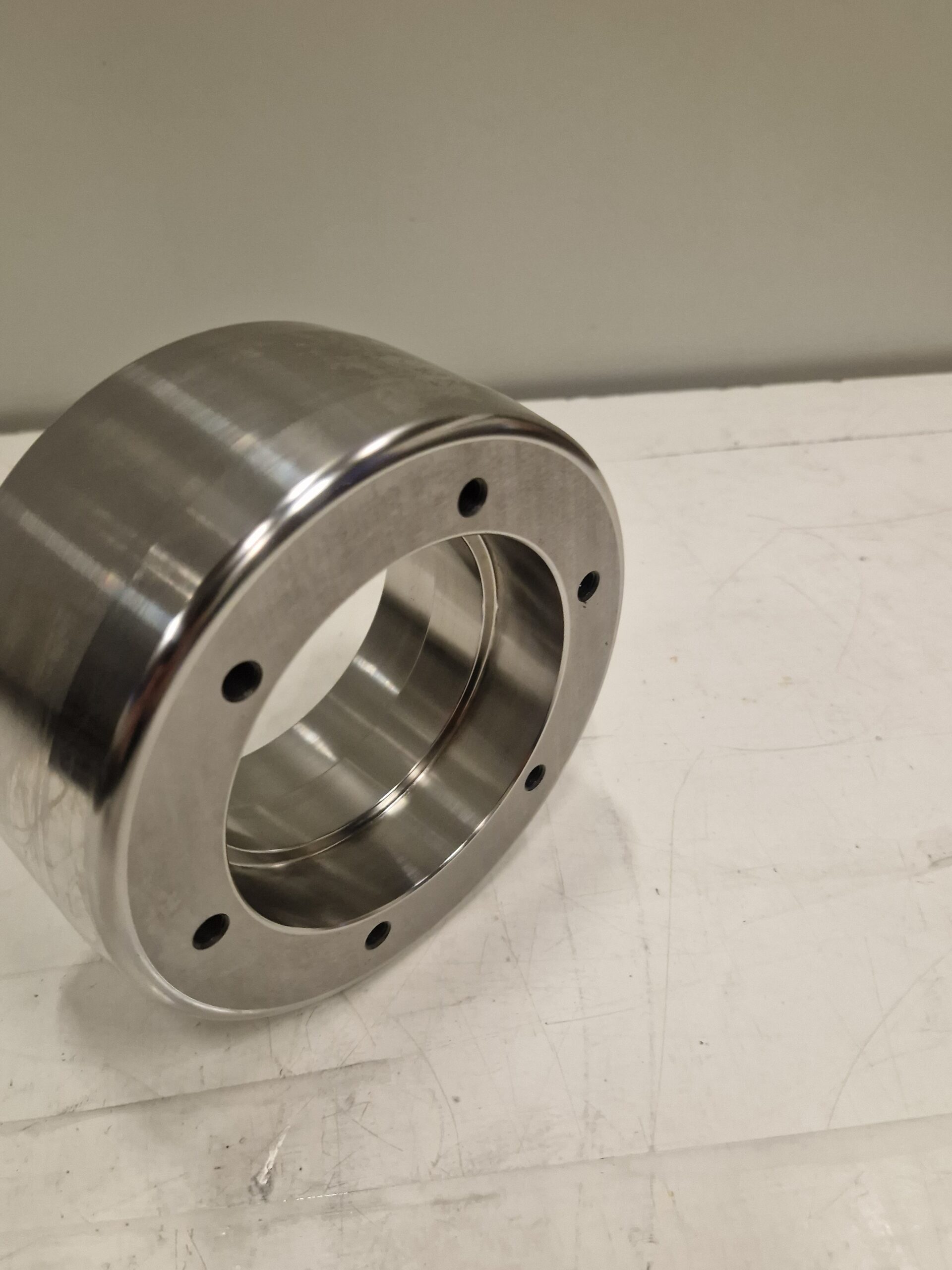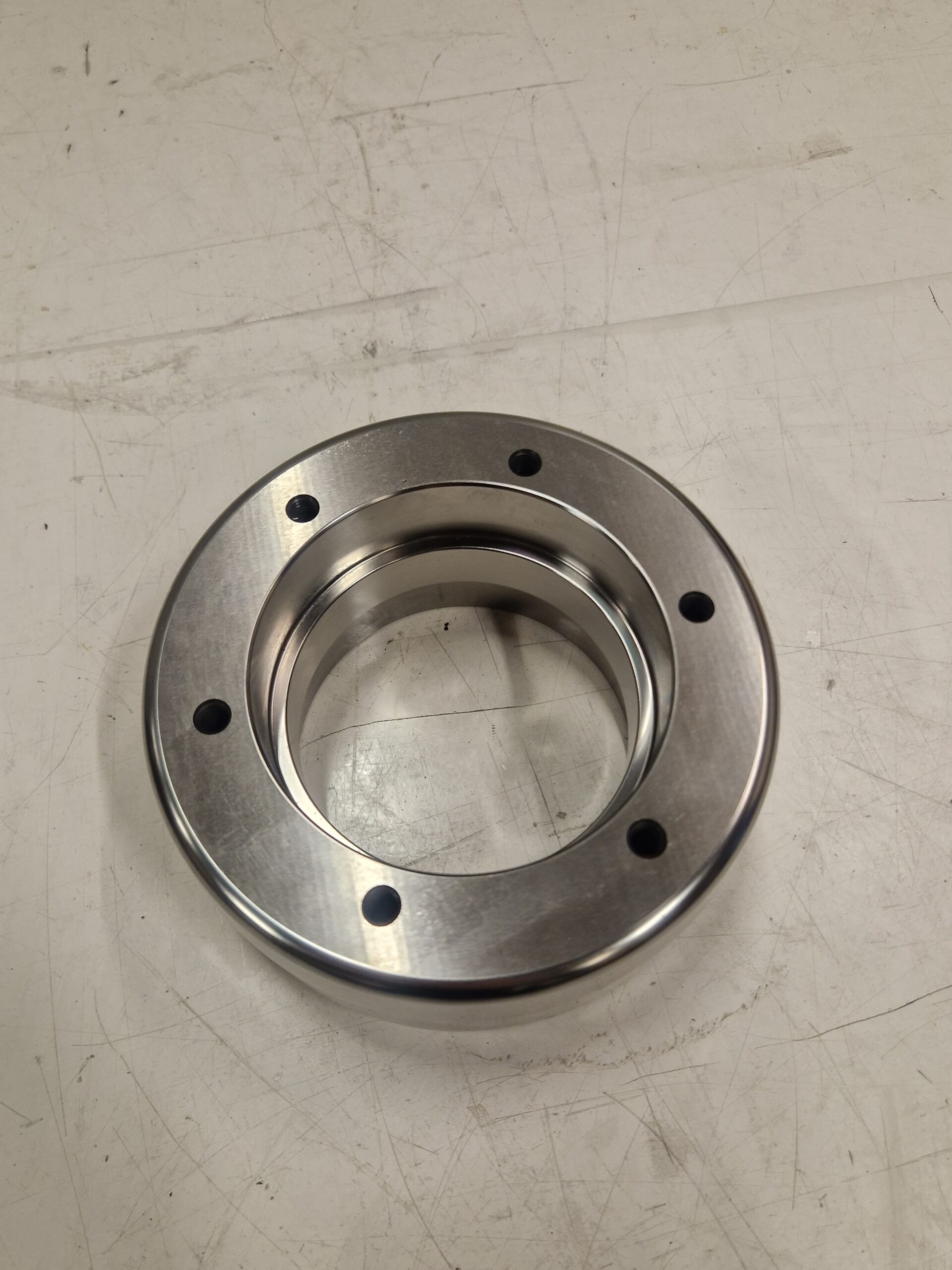 Il componente presenta diametri concentrici con tolleranze dimensionali centesimali e forature e filettature orientate tra loro, assicurando corretto accoppiamento e funzionalità in esercizio.