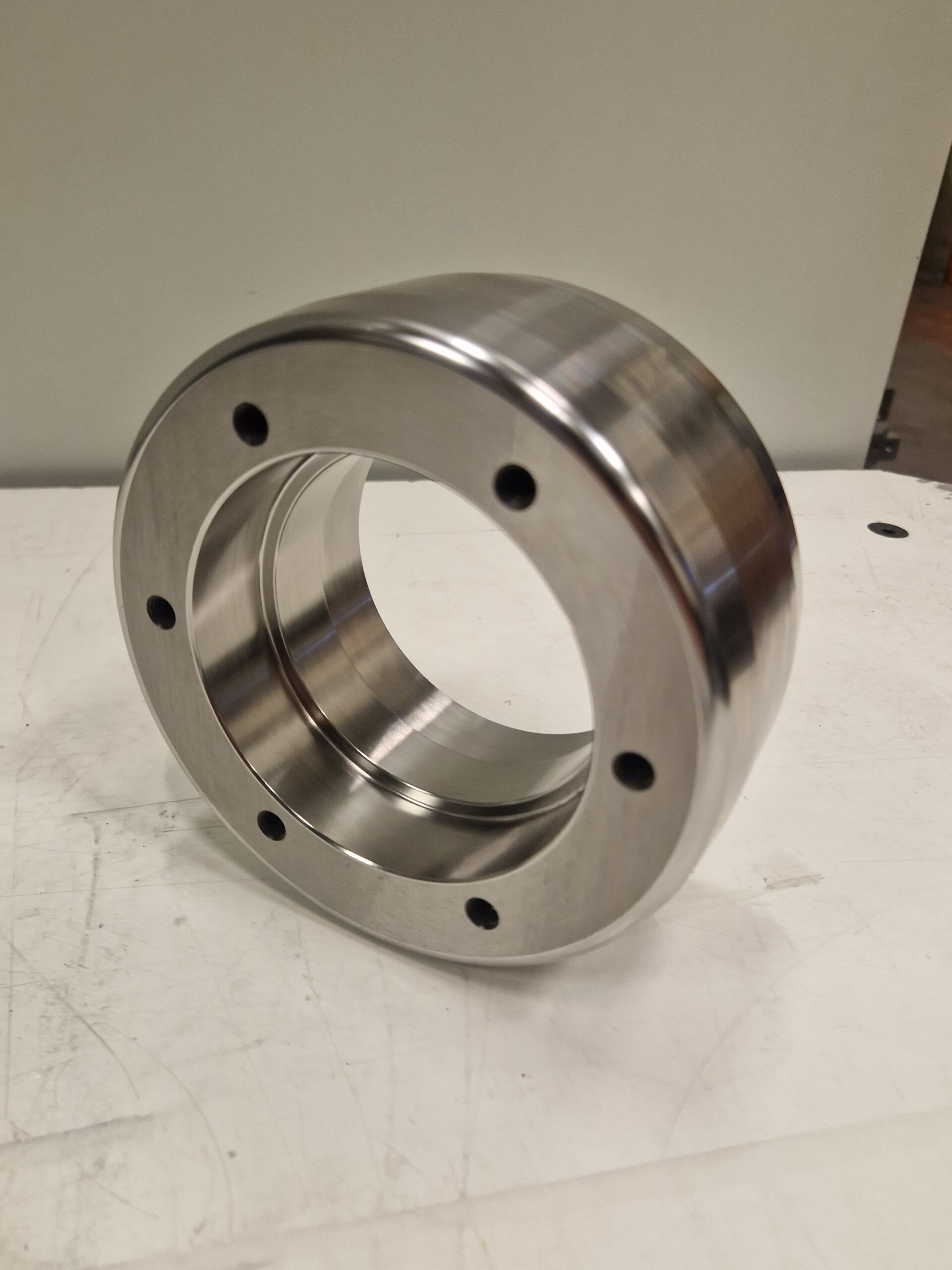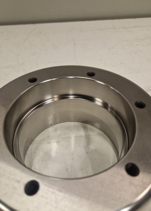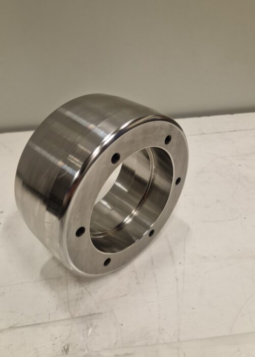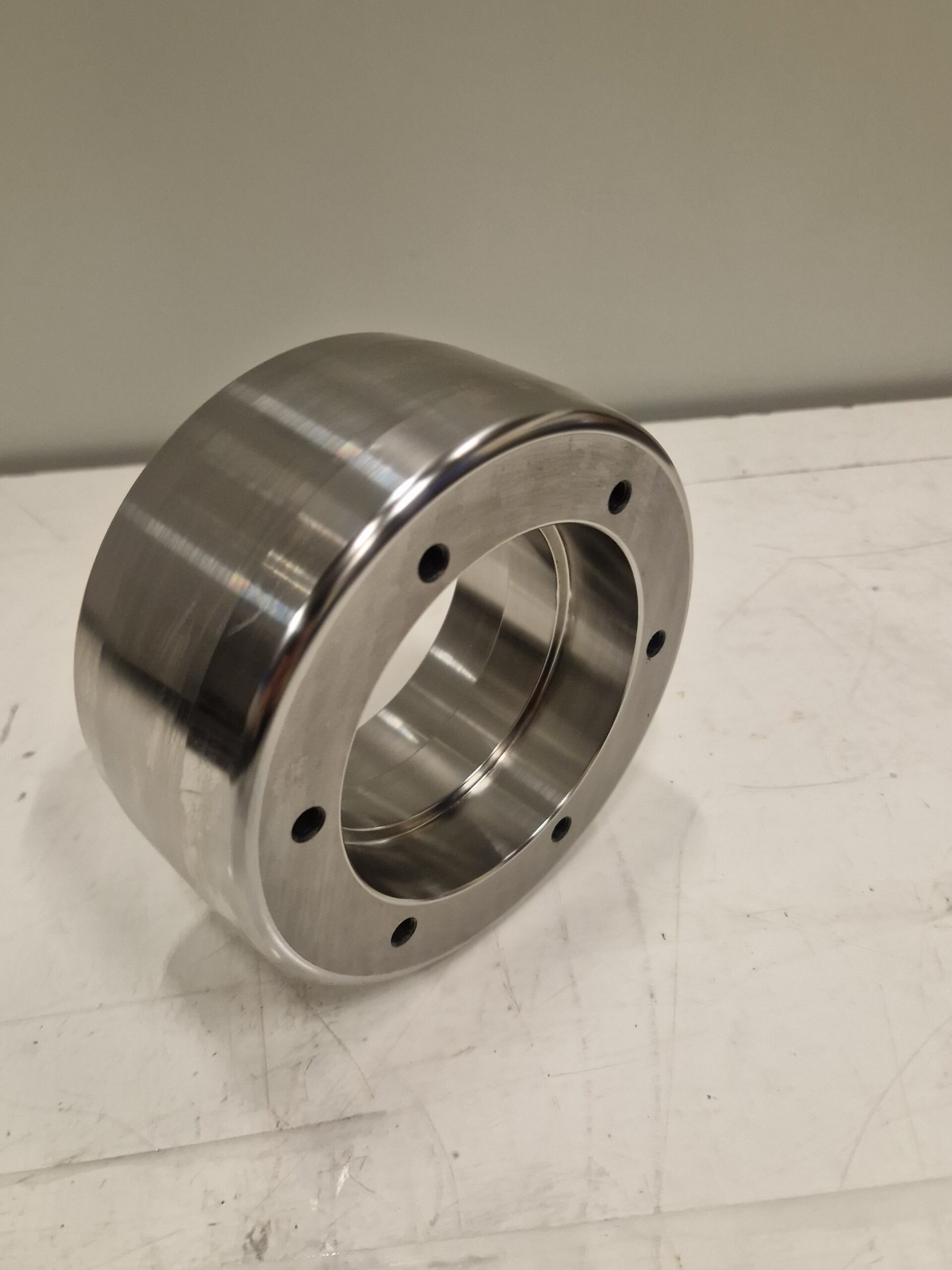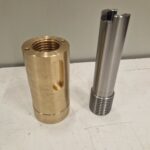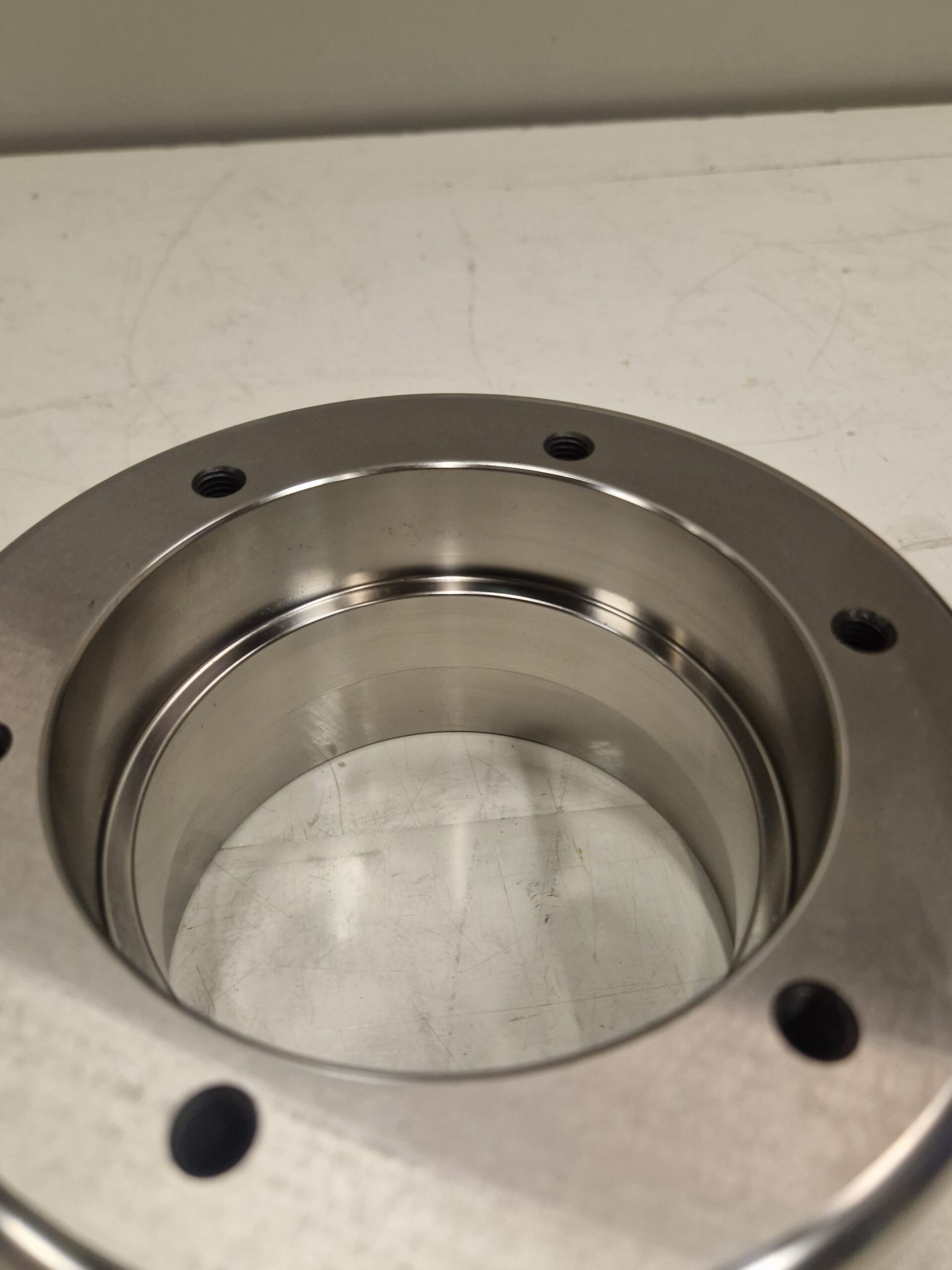 Il componente presenta diametri concentrici con tolleranze dimensionali centesimali e forature e filettature orientate tra loro, assicurando corretto accoppiamento e funzionalità in esercizio.