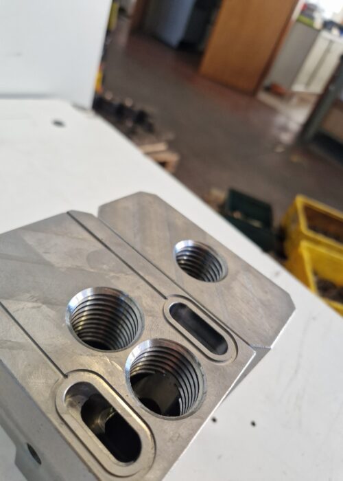 Realizzazione di gruppo traversa realizzato in C45 per applicazioni meccaniche che richiedono precisione geometrica e affidabilità strutturale.