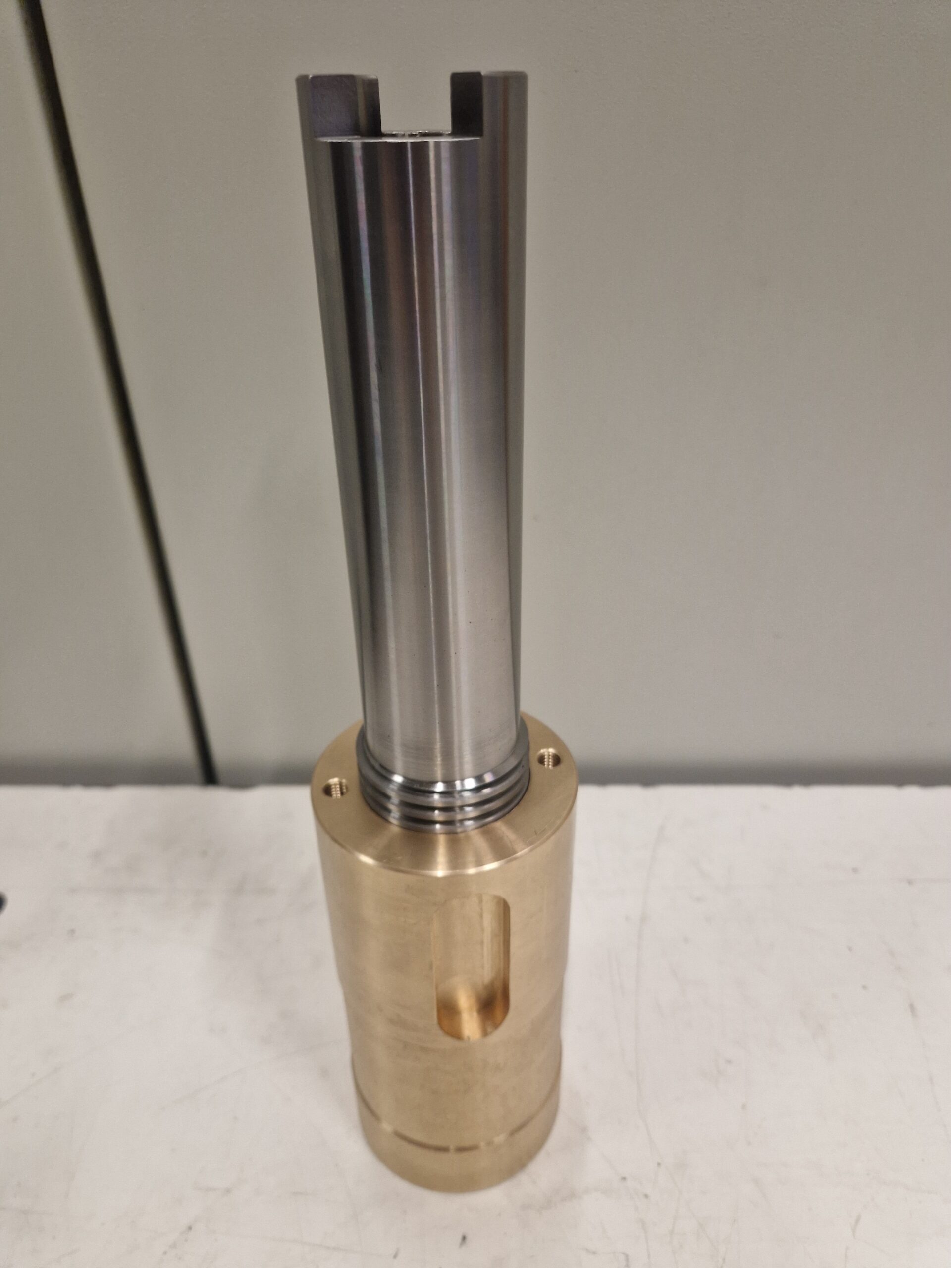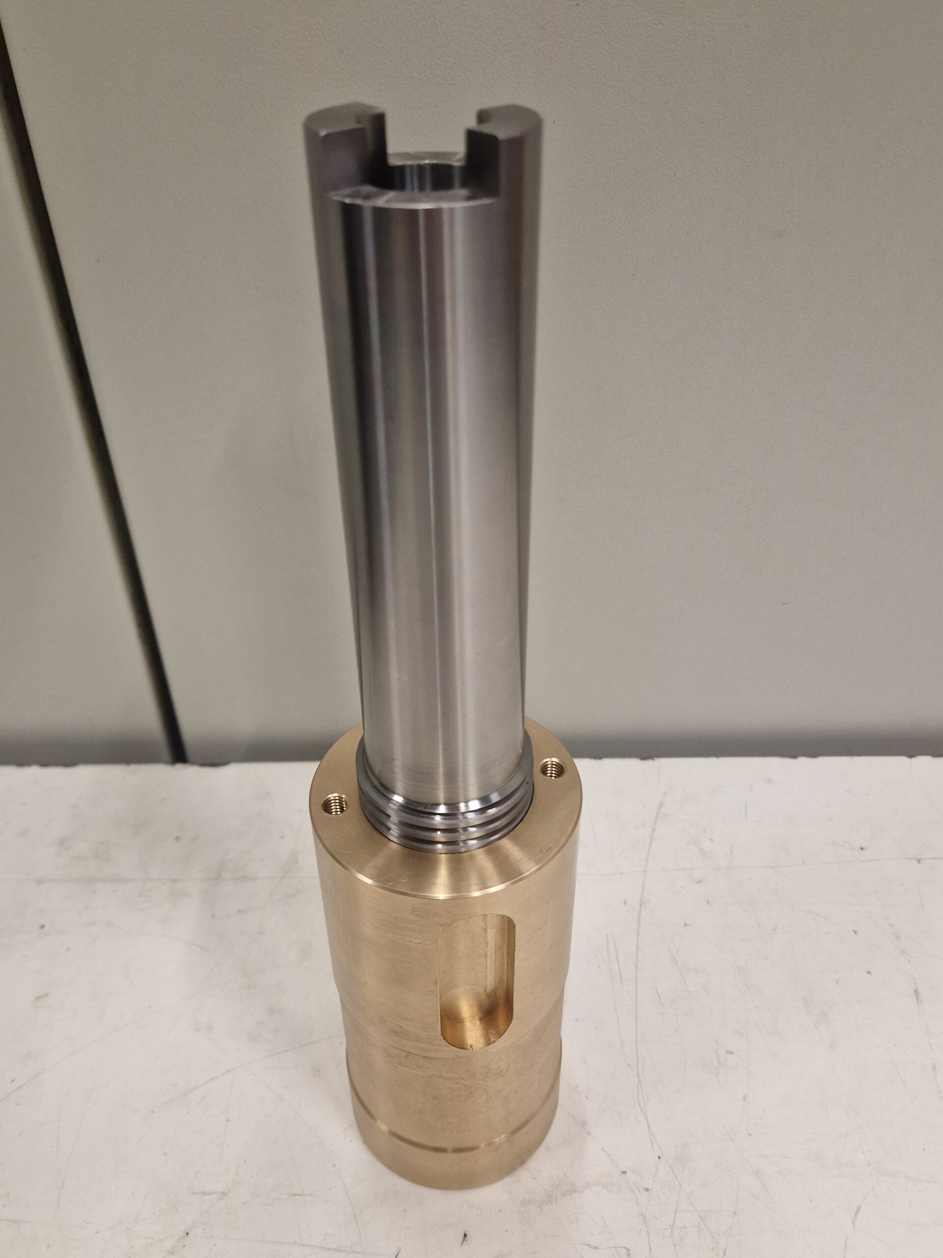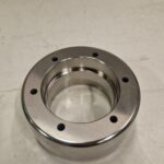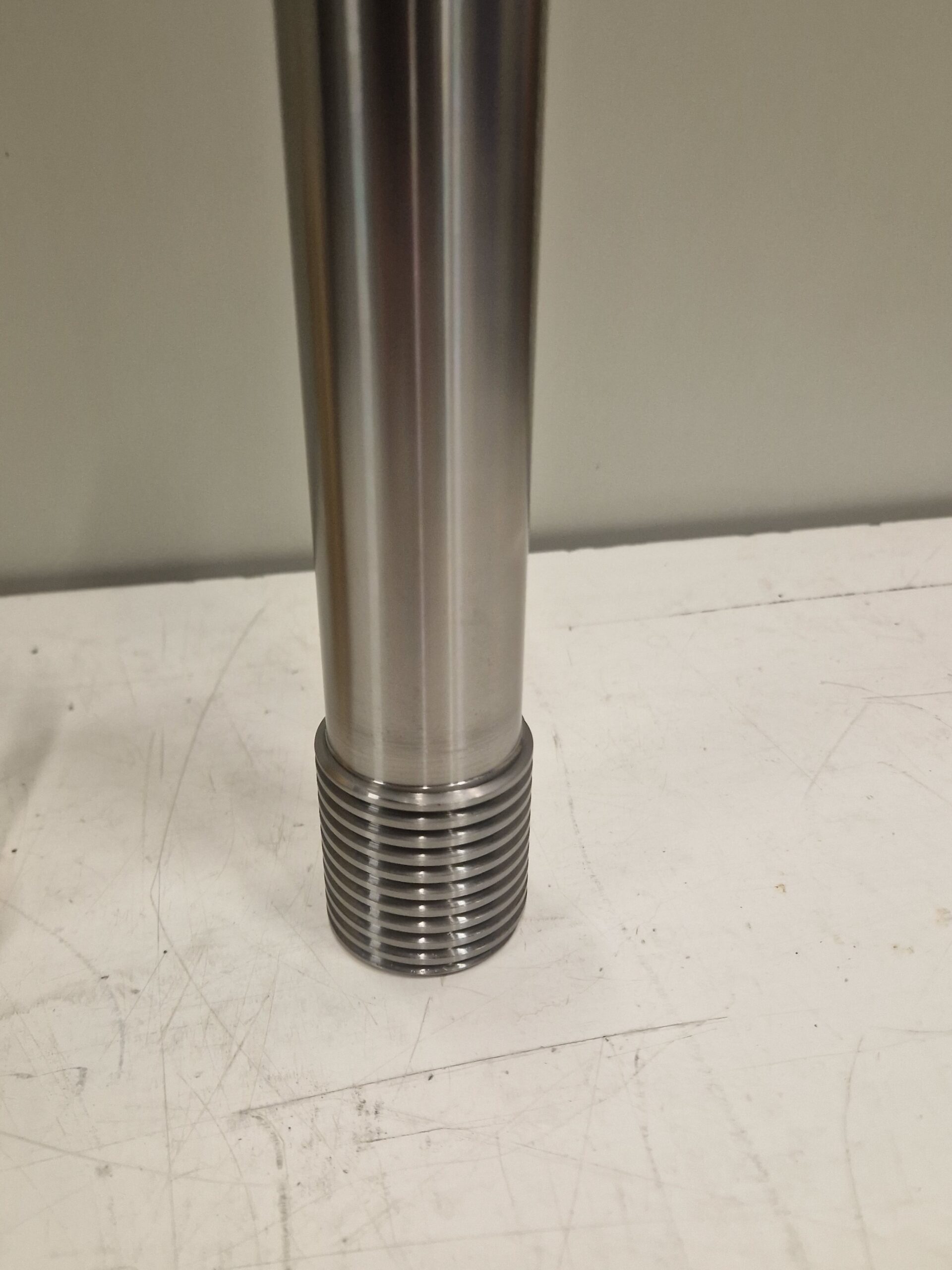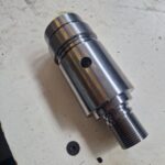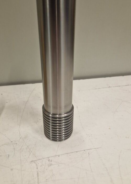 Il componente presenta diametri concentrici con tolleranze dimensionali centesimali, accoppiamento tramite filettatura trapezoidale, sede chiavetta con tolleranza centesimale e forature e filettature con passo speciale, garantendo corretto funzionamento e continuità operativa.