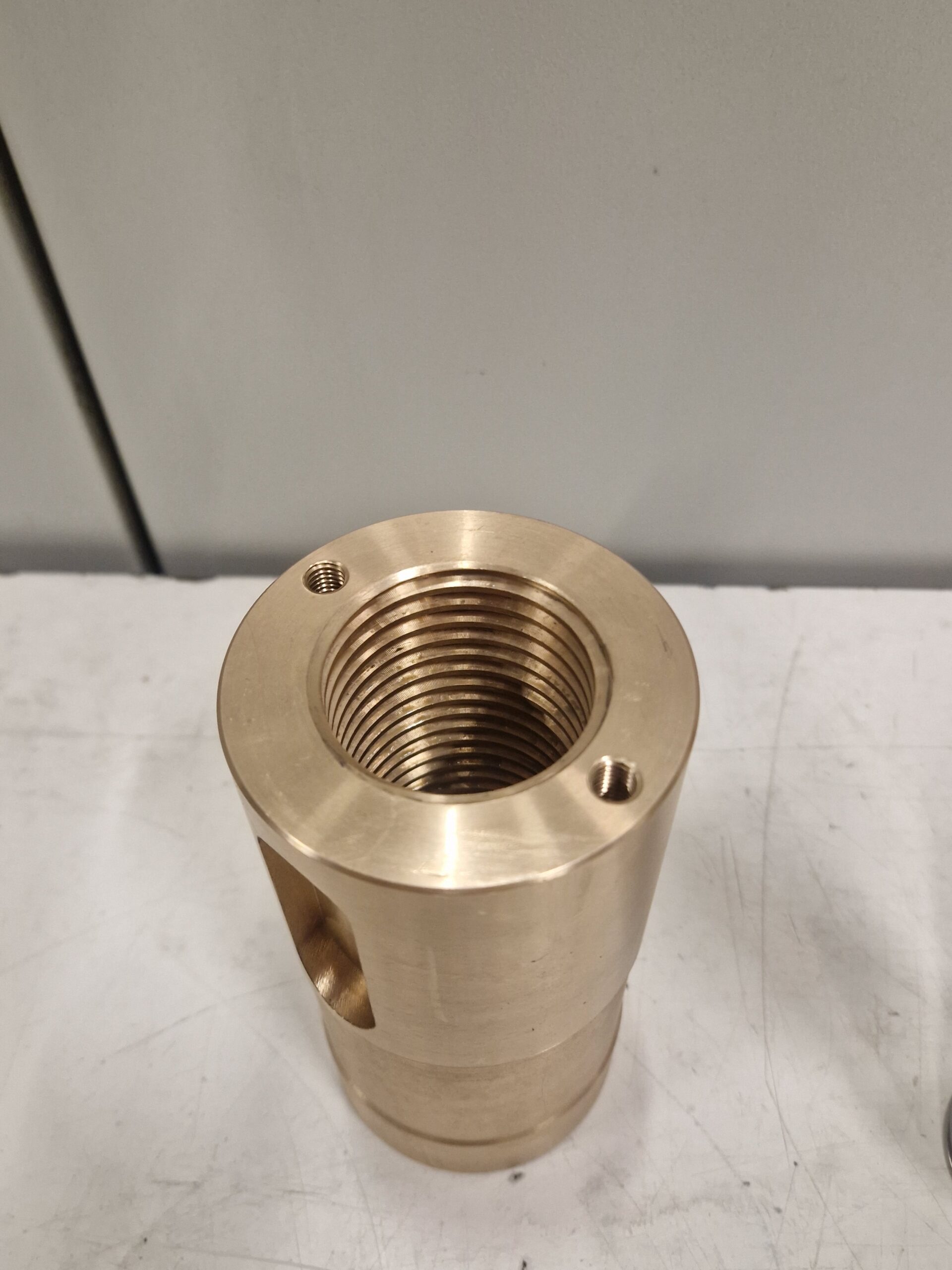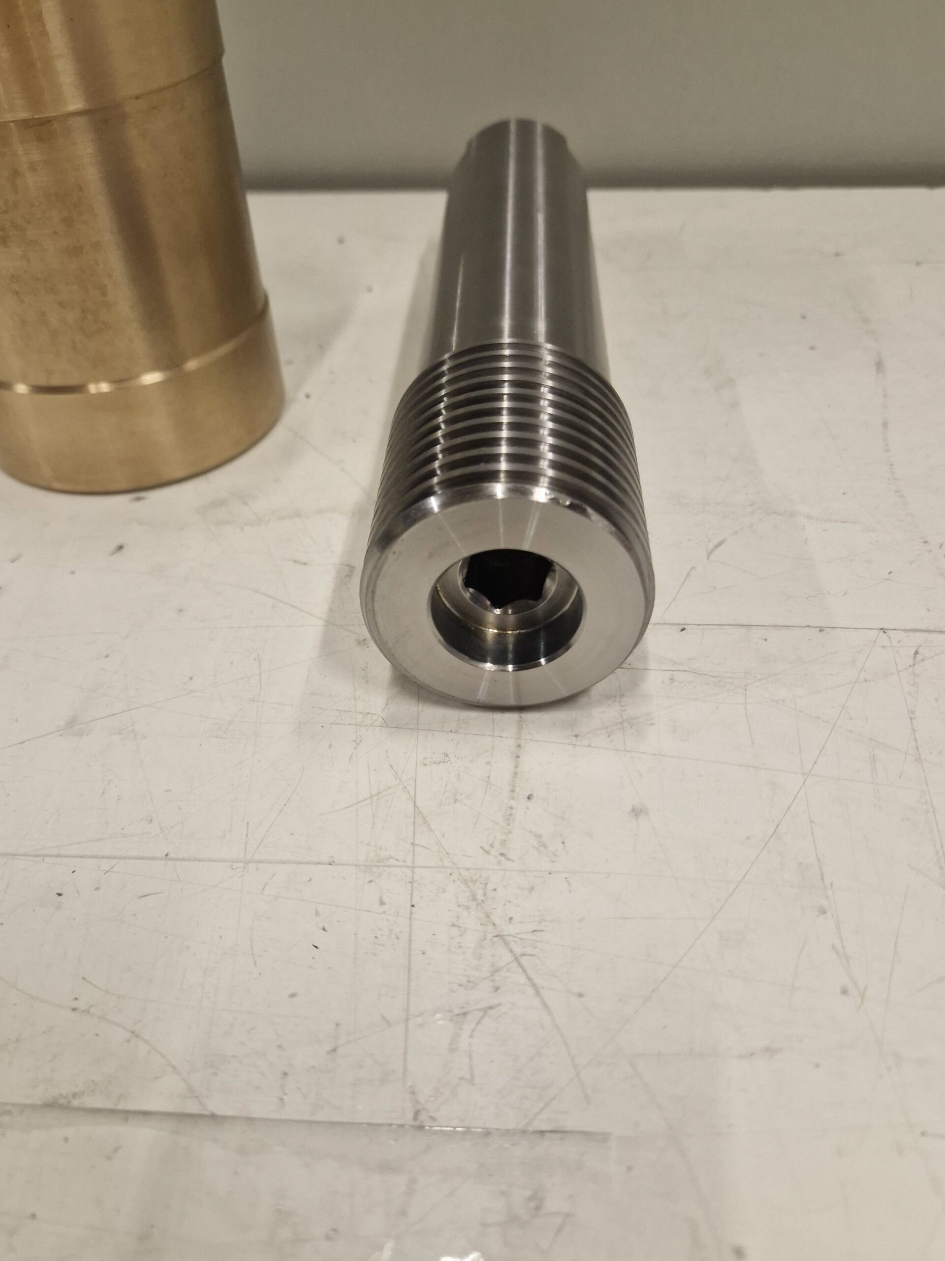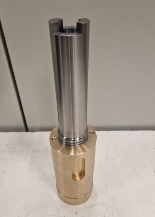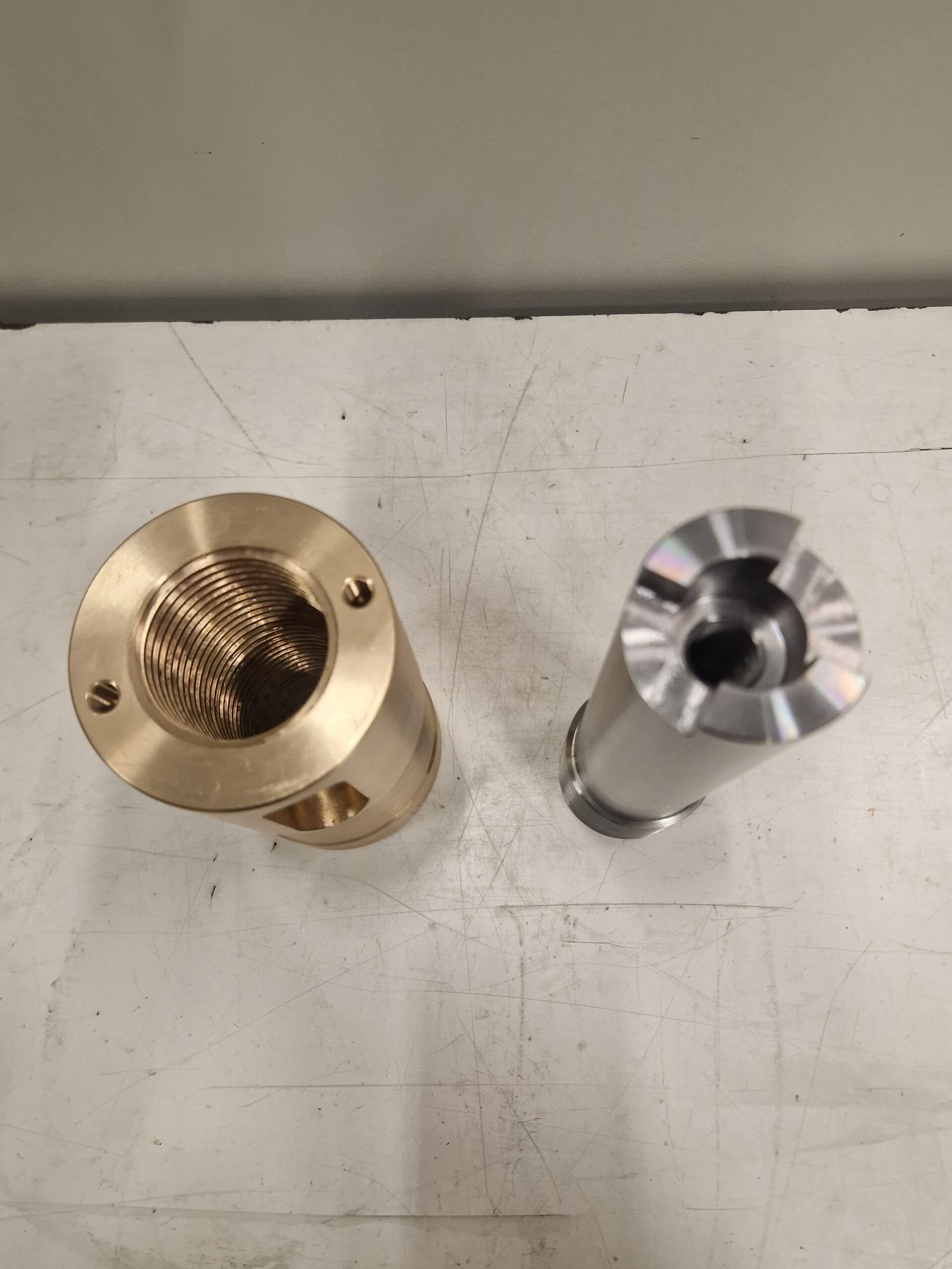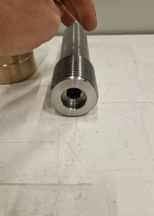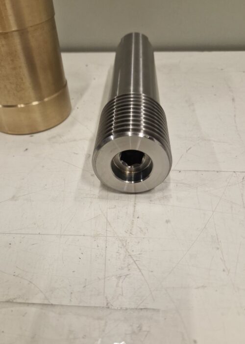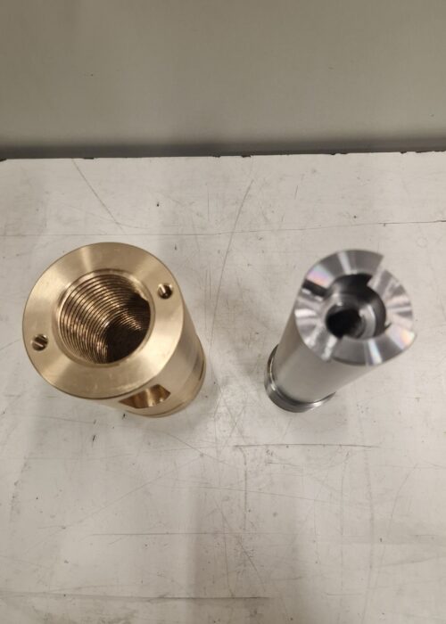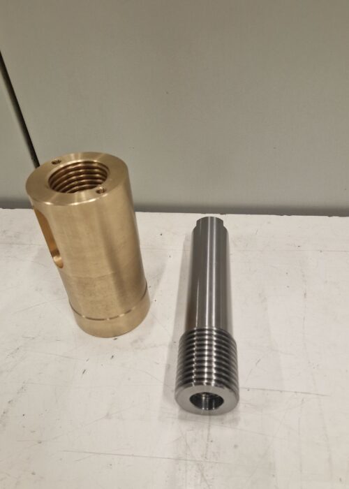 Realizzazione di gruppo vite sinistra con madrevite realizzato in bronzo e 39NiCrMo4 (39NCD4) per applicazioni meccaniche che richiedono precisione di accoppiamento e affidabilità funzionale.